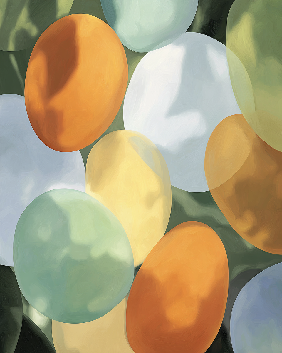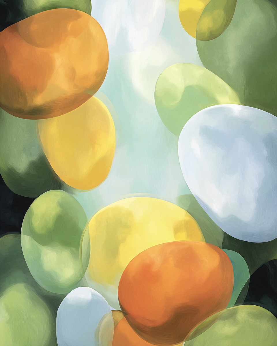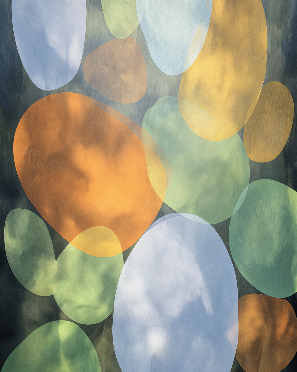 Rounded, pebble-like shapes in soft translucent colours that create a slower, gentler visual pace - ideal for recovery and low-stimulus areas.