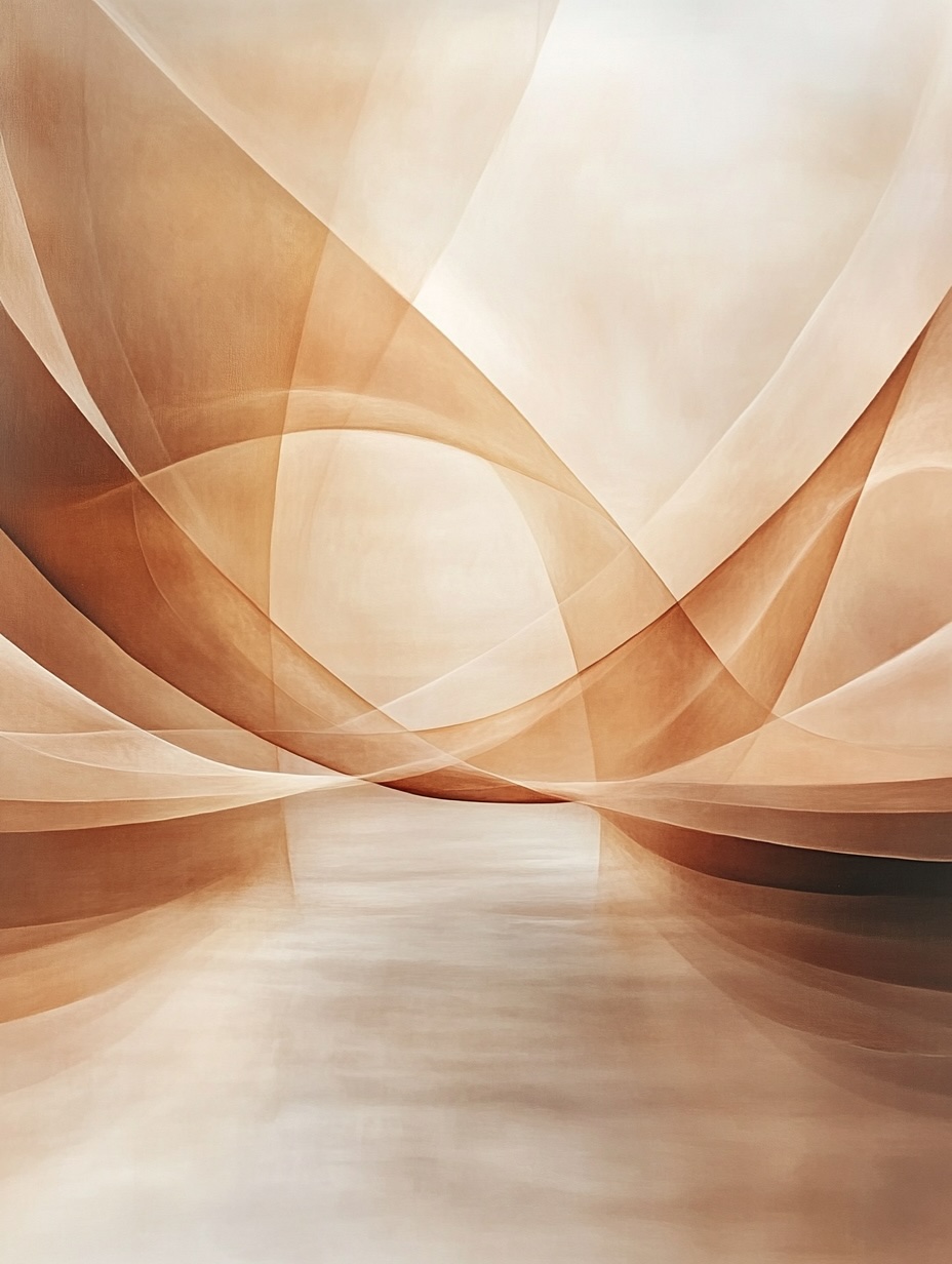 Why it works: • Wide, low-frequency folds feel like slow, gentle movement similar to curtains in soft air • Slight sheen in the artwork suggests quality materials without obvious gold or marble • Flowing shapes help guests relax and settle instead of scanning the room for visual noise