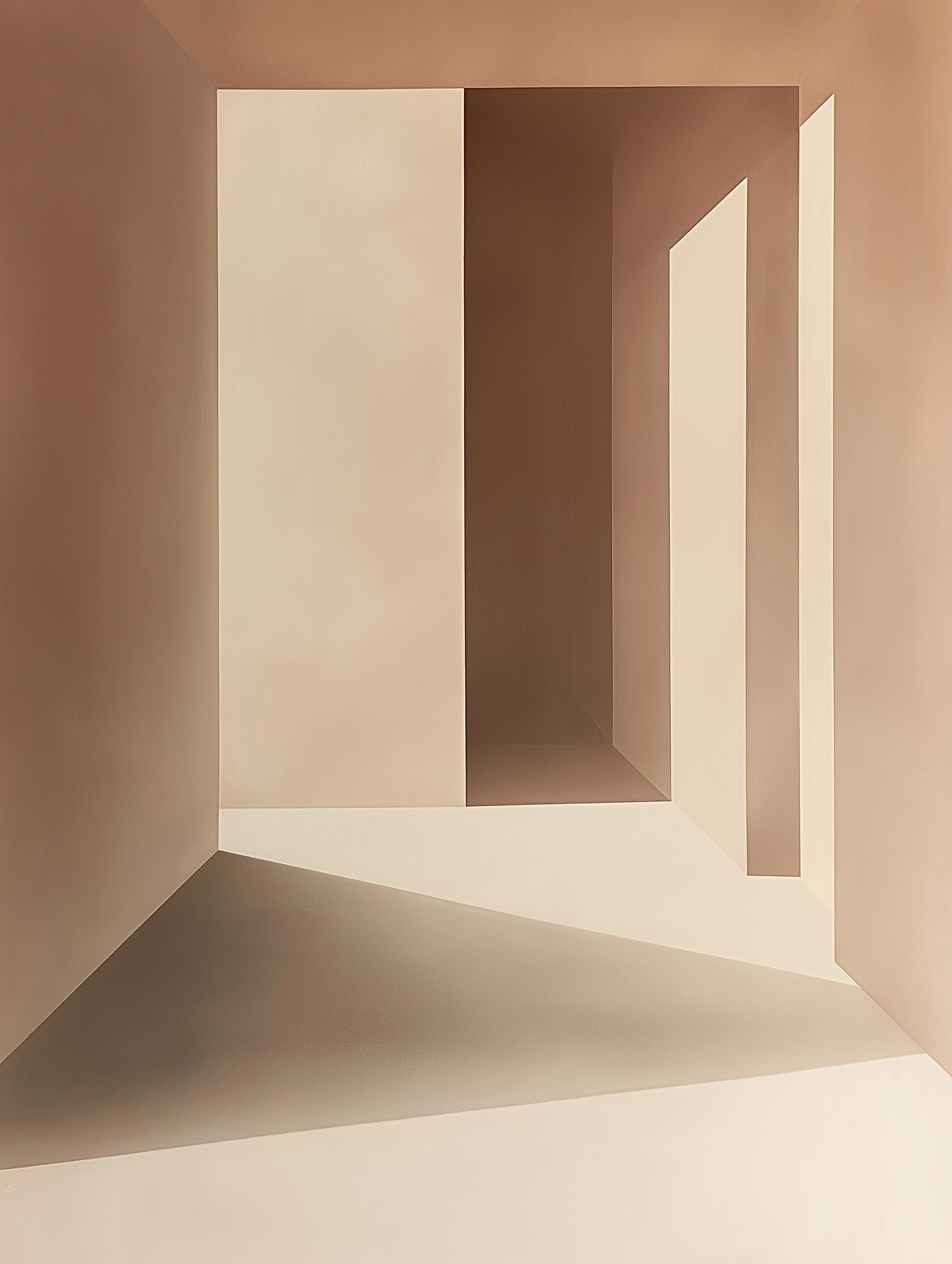 Why it works: • Large, low-detail shapes reduce visual noise and stop the eye from jumping around • Warm, even tones help walls and corners read as one calm, continuous surface • Clear light direction subtly suggests where paths and furniture should go, so layouts feel more logical and easier to understand
